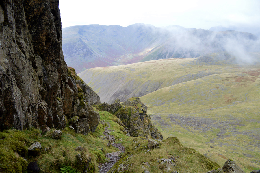 | Looking back along the grassy shelf at the end of the Travese before I start my climb into Deep Gill. |