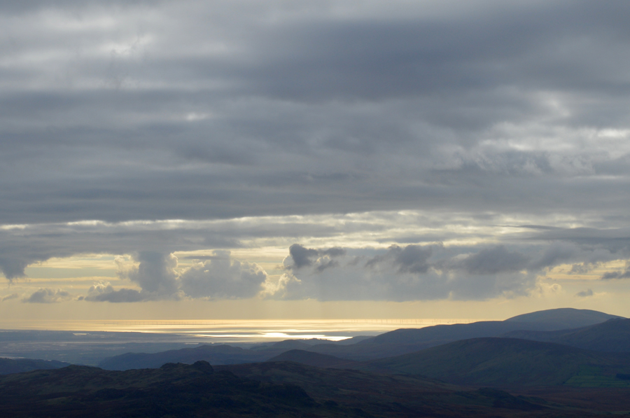 | Despite a lure to summit Pen I hadn't quite committed just yet as there are some key factors which may sway me as a covering of low cloud which extended as far south as the Coniston Fells was advancing, and closing in. |