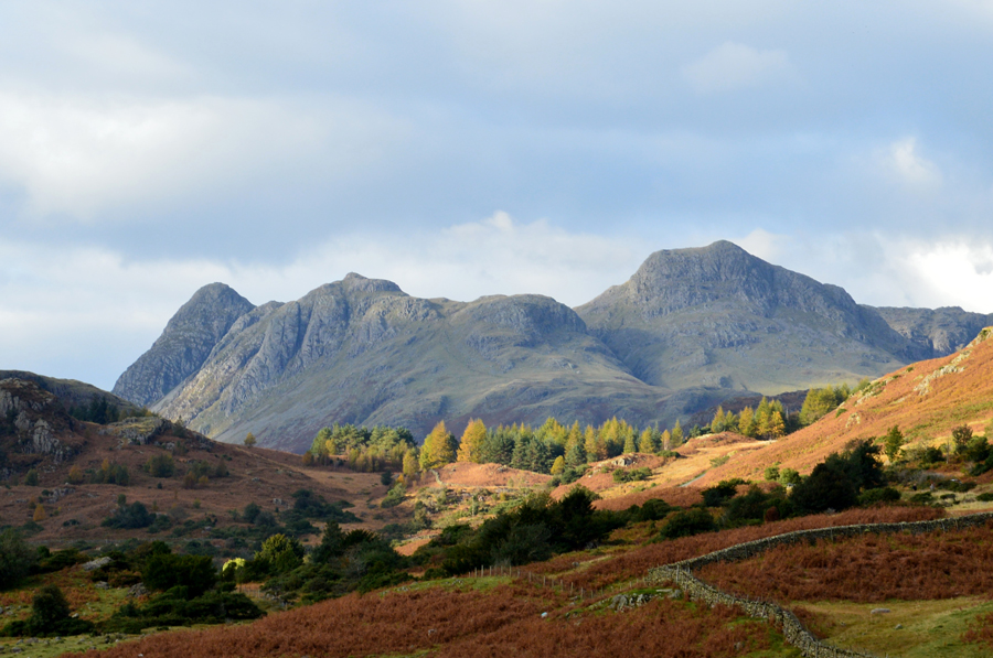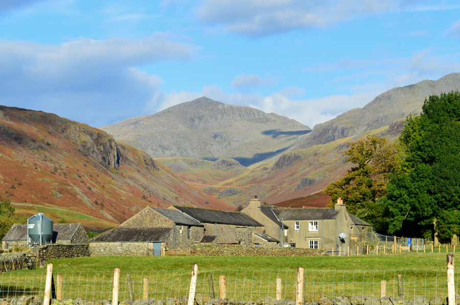 | The Langdale Pikes seen taken close to Fell Foot Farm. |