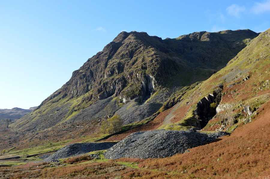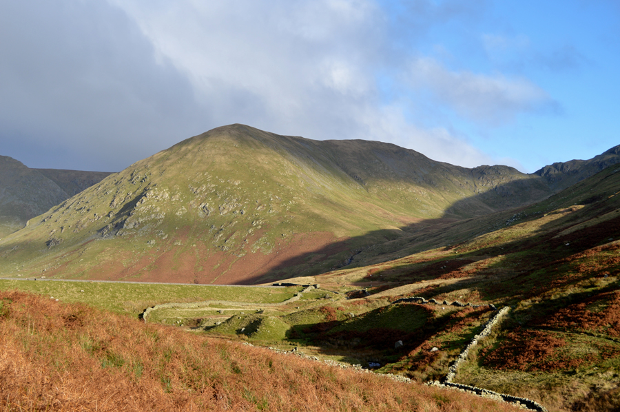 Lingmell End seen with the top of Nan Bield Pass to the right. |