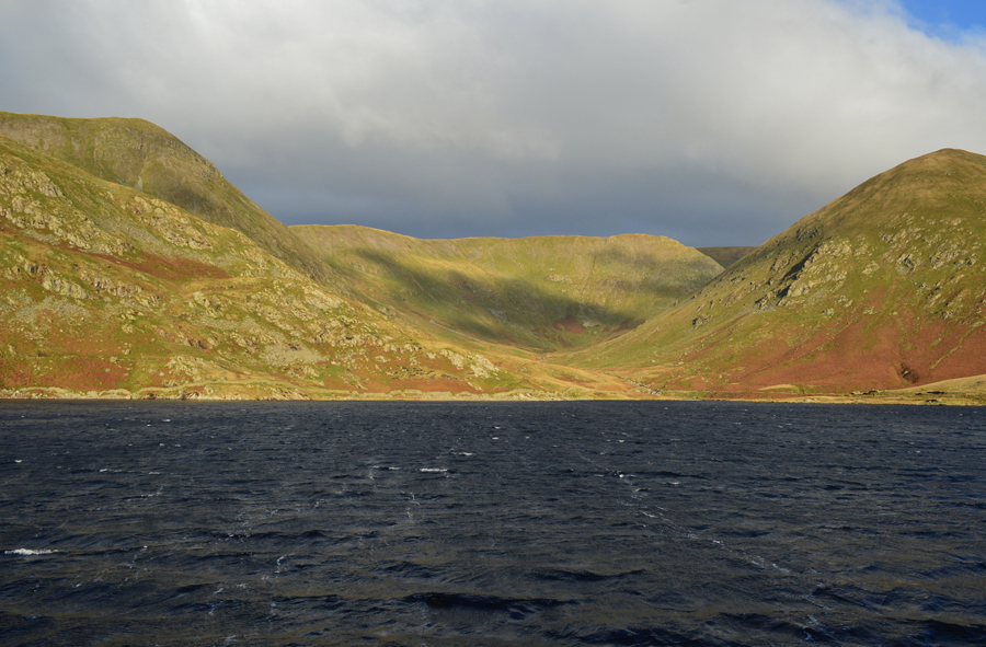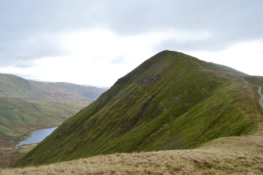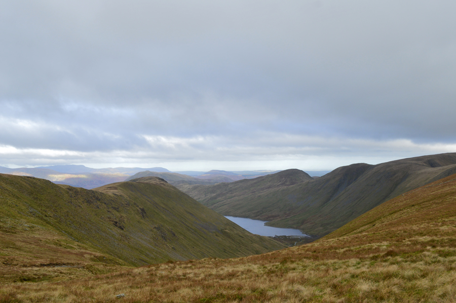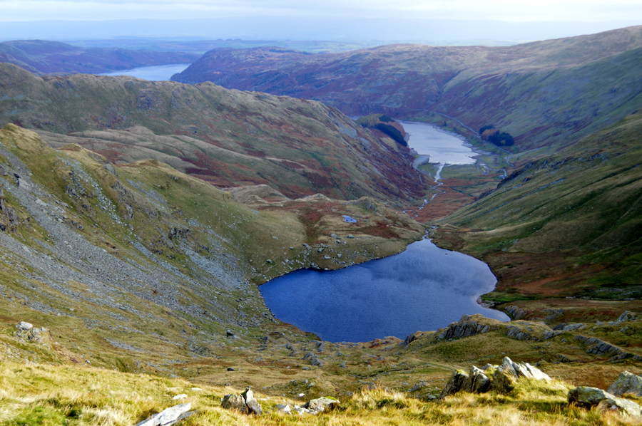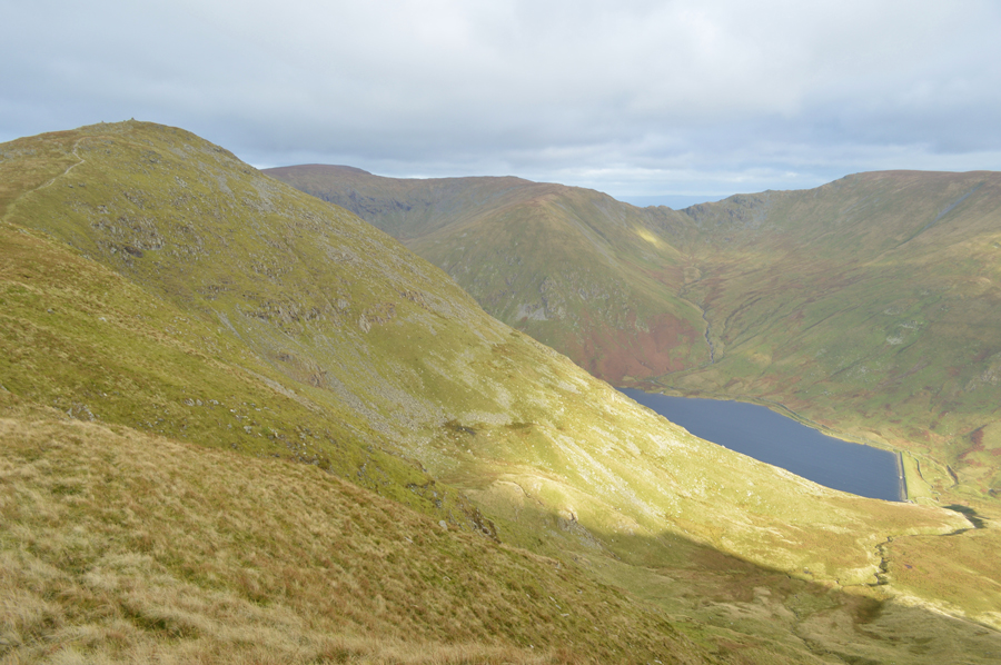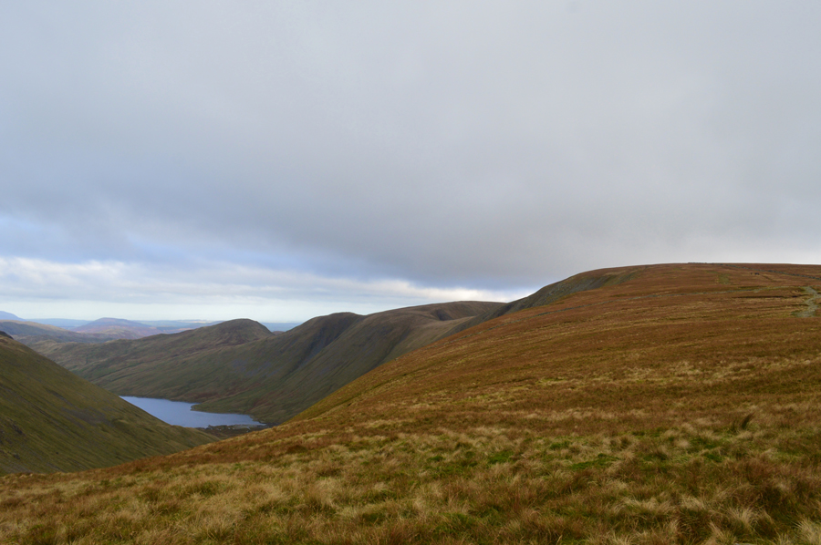 Mardale Head seen below Small Water with Haweswater in the distance as I start my ascent on Mardale III Bell. |