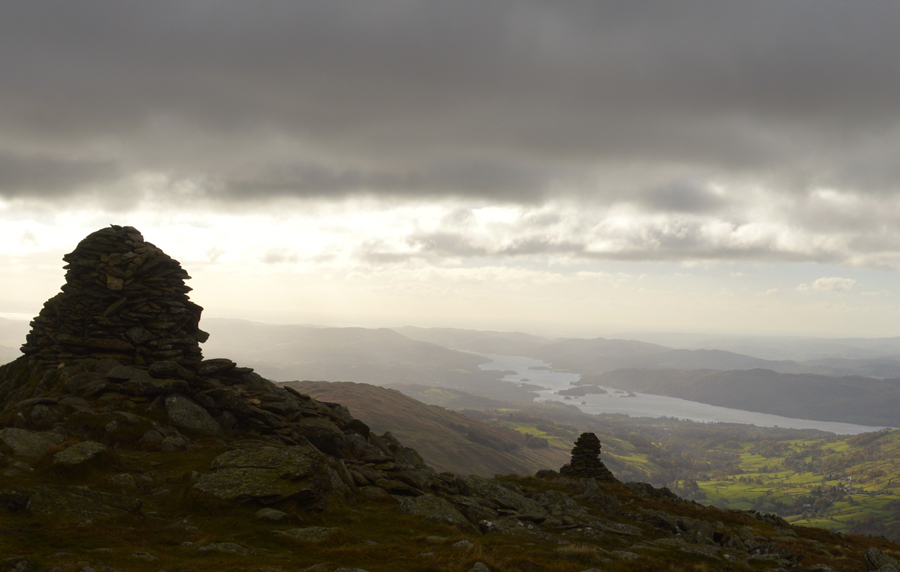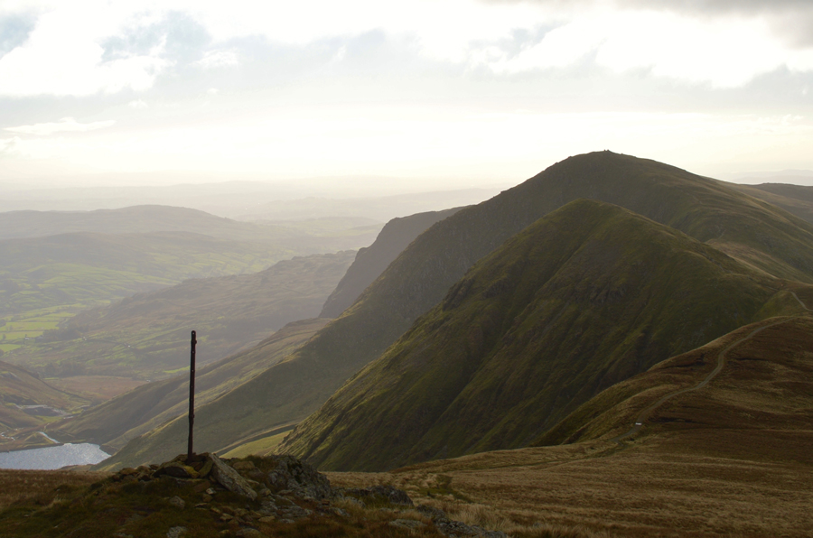 The III Bell ridge seen with a distant Windermere from Thornthwaite Crag. |