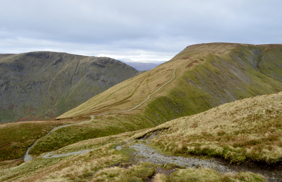 With the top of Smallthwaite Knott reached I follow a narrow and sometimes swollen path which rises steadily before the final steep pull towards the top of the pass. It was here I experienced some significant buffering where the side of my face went almost numb due to the windchill, it was quite a painful few moments and by reckoning it's going to feel a lot colder once exposed.