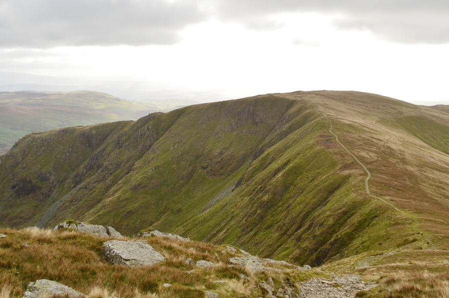 Red Screes and Middle Dodd seen over St Raven's Edge. |