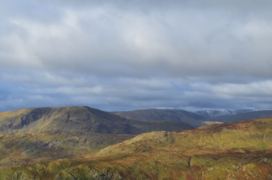 Yoke, Rainsborrow Crag and Steel Rigg from the climb onto Nan Bield Pass. |