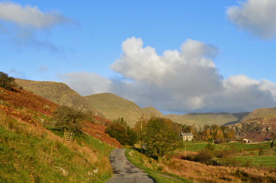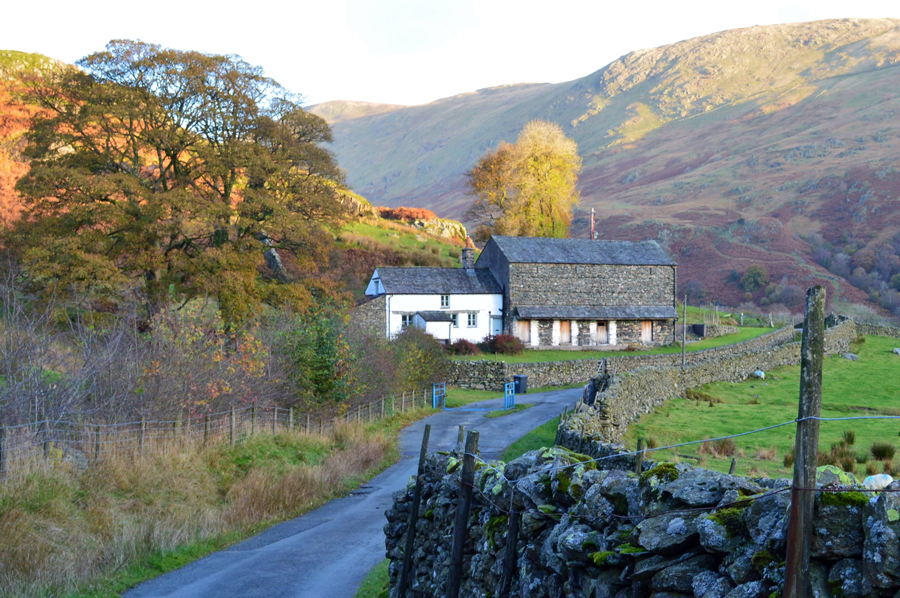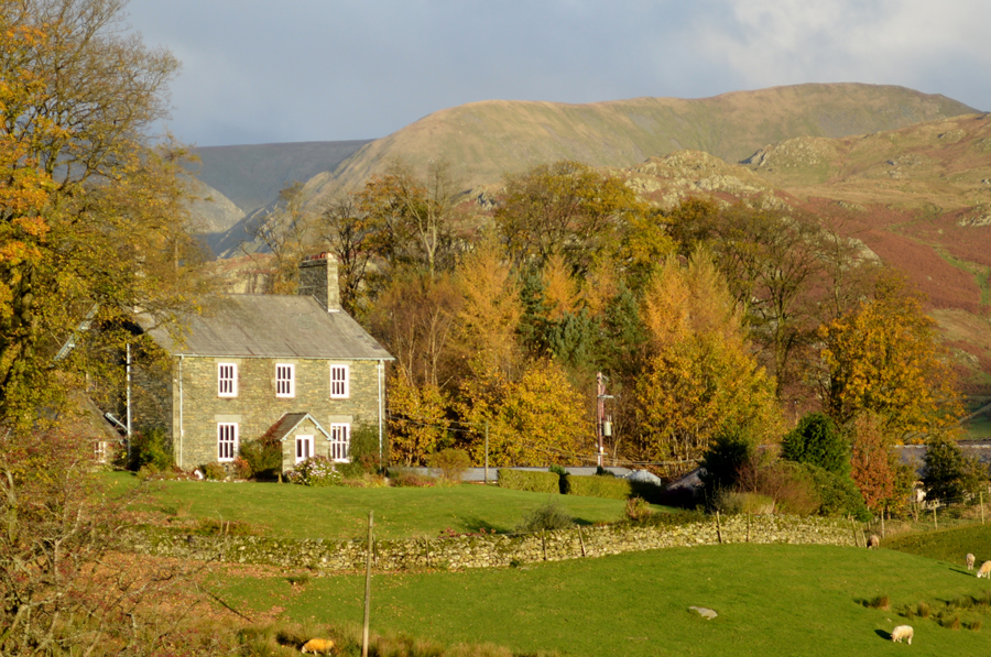 Autumn at Hartrigg Farm with Lingmell End in the distance. |