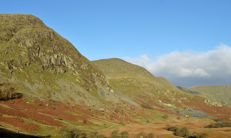 Over the top of Hall Cove towards Thornthwaite Crag. |
