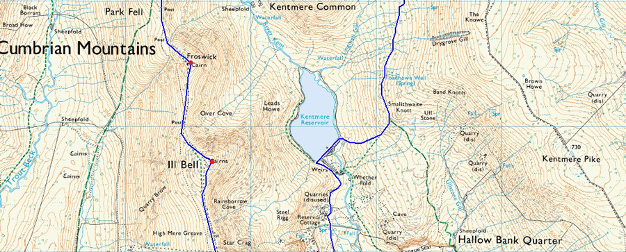 Froswick, III Bell with the Kentmere Reservoir below. |