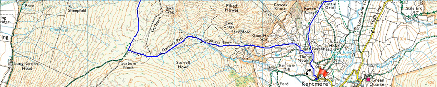 Kentmere Church - Hartrigg - Kentmere Reservoir - Nan Bield Pass - Mardale III Bell - Thornthwaite Crag - Froswick - III Bell - Yoke - Garburn Pass - The Nook - Kentmere Church |