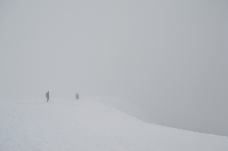 I arrive at the summit trig point and stop to take a solitary shot, it's mind numbingly cold and brain freeze is just moments away. I pass the chap who I had been trying to keep up with earlier as he walks towards the trig point before disappearing into the cloud. I've been on the summit of Helvellyn many times in very similar conditions but it's never felt as cold as today. With this I decide to make my way towards the shelter were I'll de-shoulder and grab a bite to eat, the thought of continuing my walk towards Nethermost Pike and back to Helvellyn summit again gets shelved while I'll ponder on the rest of the route while eating lunch. |