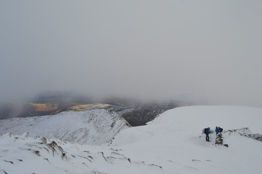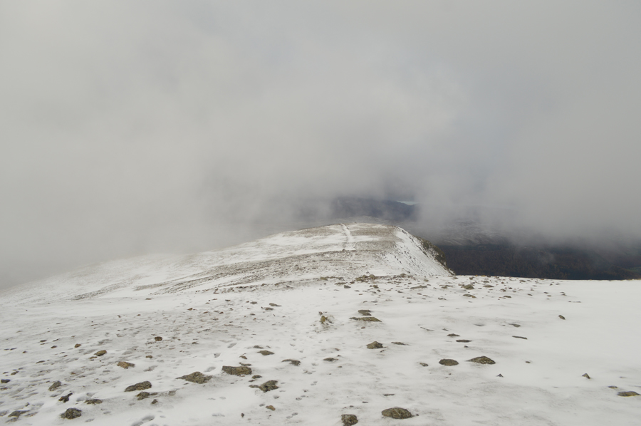 Descending Browncove Crags as I dip below the cloud. |