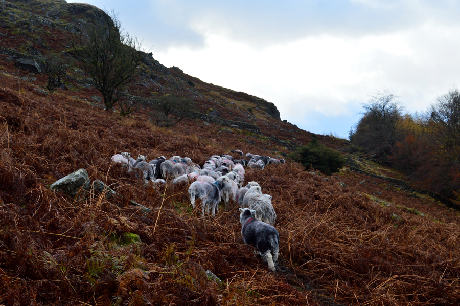 After crossing Helvellyn Gill once more I pass through a wooden gate which always provokes memories of being buried deep in snow during one Winter visit sometime ago now, still the memory remains. Further up a herd of dozing sheep completely block the path but as I drew closer they slowly began to rise and trundled off into the Bracken.