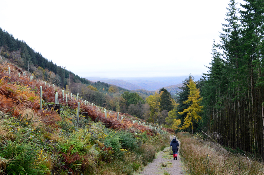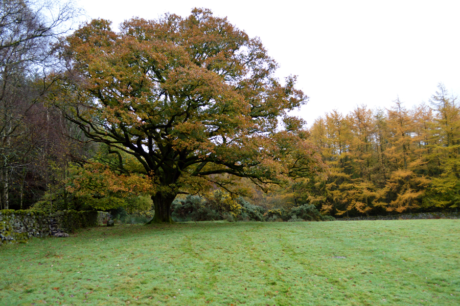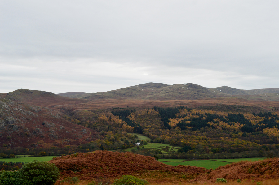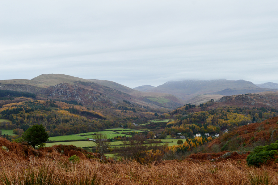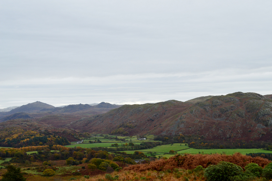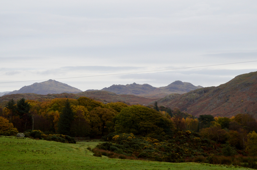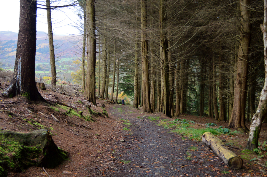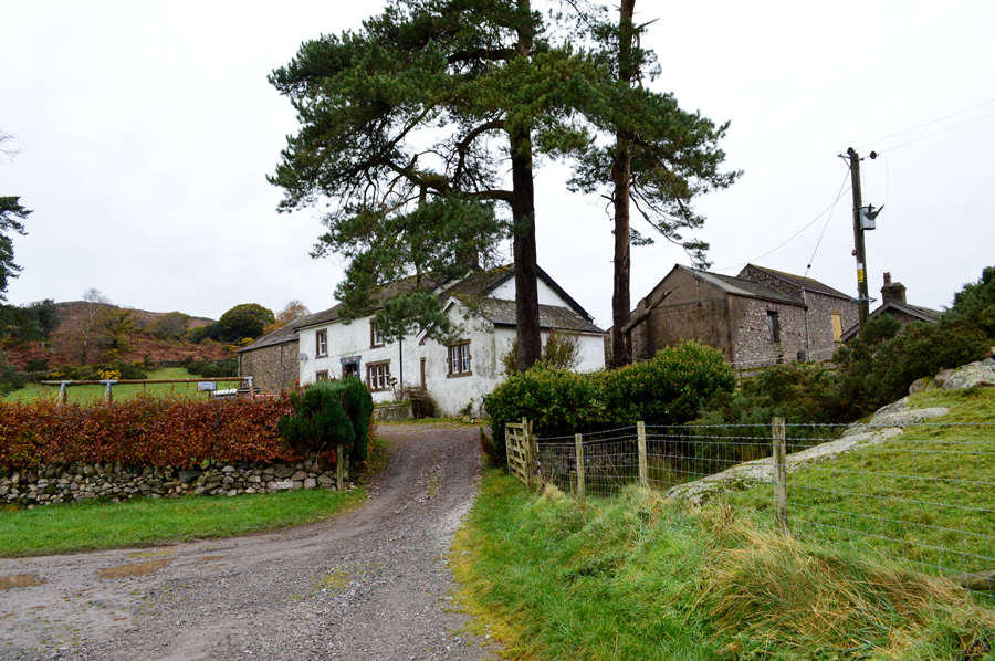 We flank the narrow gauge line to our right for a short time before continuing down a narrow tree lined lane where distant views opened out over the summit of Hard Knott Pass but it was so murky a camera wouldn't have done the view any justice. Up ahead we reach a wide wooden gate which opened out into a field but first we had to watch over footings as opening the gate meant trawling through thick mud, it wasn't the first, nor last time our boots would be christened with the stuff. |