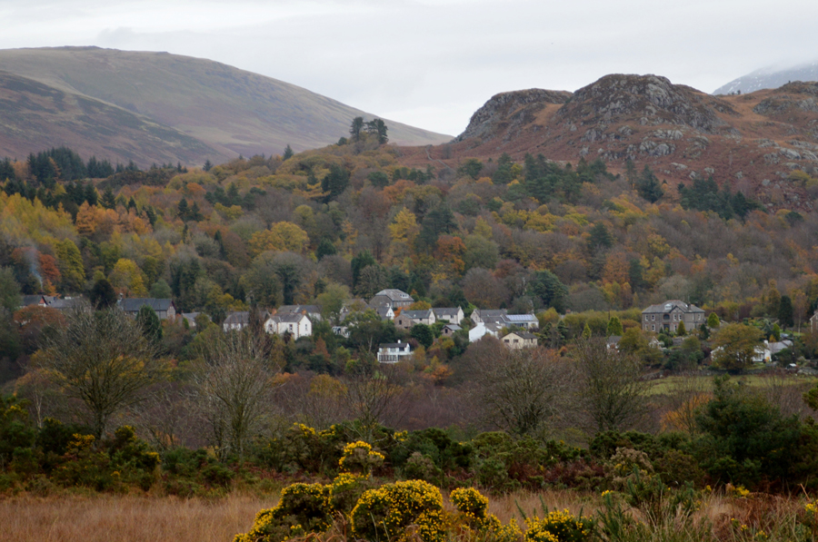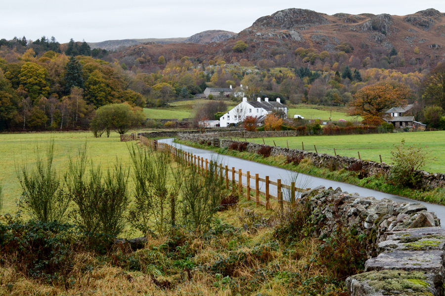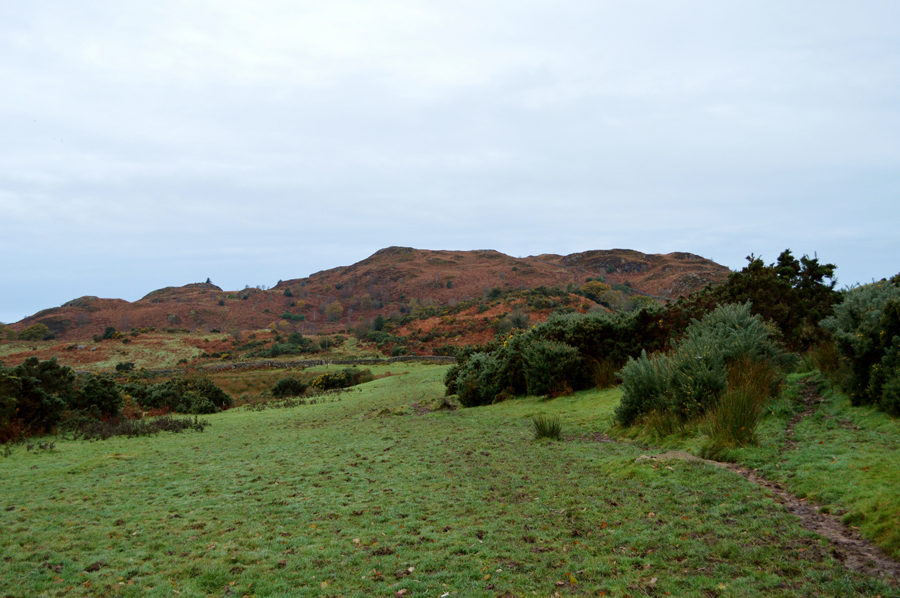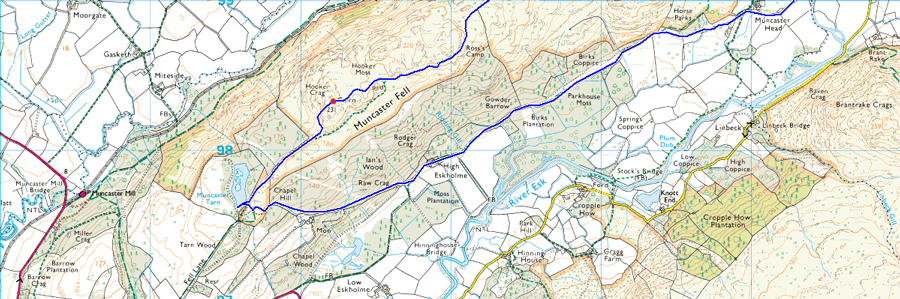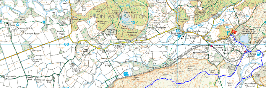 We kit up with our cars parked side by side having just parked up at the parking spaces close to Giggle Alley which is also next to the public toilets which we found are closed for Winter which meant that if you needed a pee right now you'd have to wait until Spring time. The air is mild and feels like it's in double figures without so much as a breath of wind although no doubt it's going to feel much warmer once we are underway. With Gaiters added for the boggy bits we head out towards Eskdale Green Station making use of the whole width of the road seeing as there was no one about, soon passing sleeping cottages we reached the Station where we hooked a right signposted Muncaster Fell.