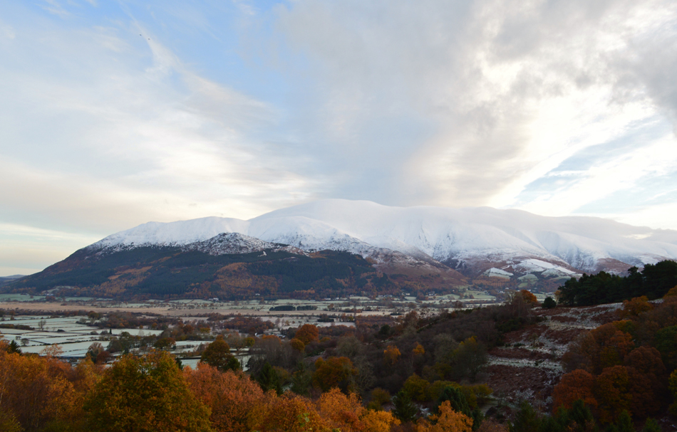Looking over the tree tops towards the Skiddaw Fells from the ascent on Kin 08:57am -1°C |