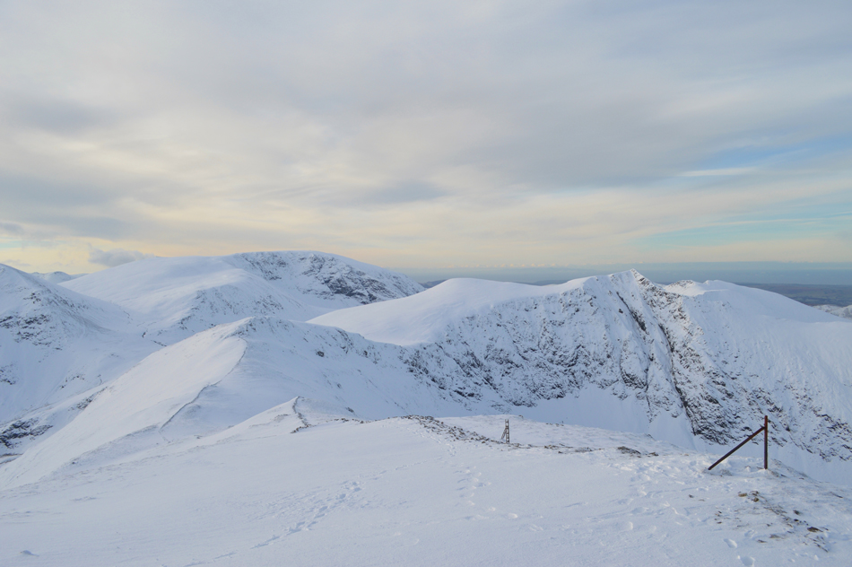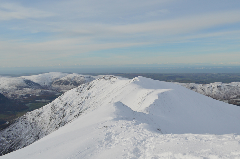 Snow capped views over Coledale Hause, Crag Fell (Eel Crag) Sand Hill, Grasmoor and Hopegill Head. |