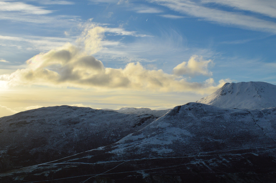 My only wish from here is that we make it to the summit under the gaze of a bright blue sky because all around us the light is changing and high cloud is developing too, but for now, it would seem the north western fells are the place to be. |