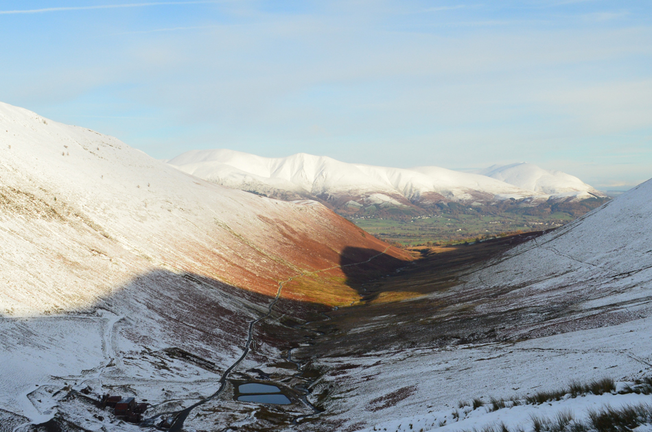 With our backs to Coledale Hause we strike out along the Mine Track shadowed by Grisedale Pike to our immediate flank. Soon though the sunlight starts to peak through and for the last half mile we are blessed in Winter sun all the while the grandeur of Skiddaw reveals her ridges and peaks with each step taken. It's not long before we are back at the car park which by now is full to bursting with badly parked cars in every direction you look.
