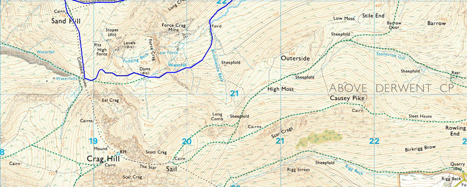 Force Crag, Crag Fell (Eel Crag) and Sail from Sleet How. |