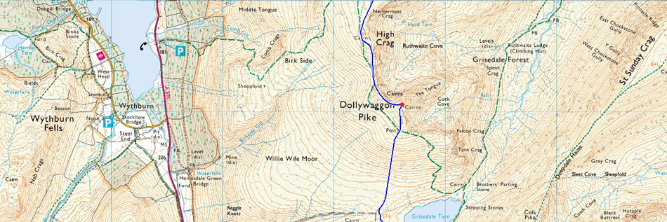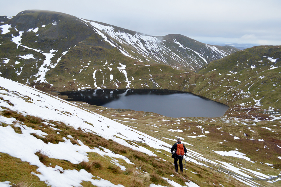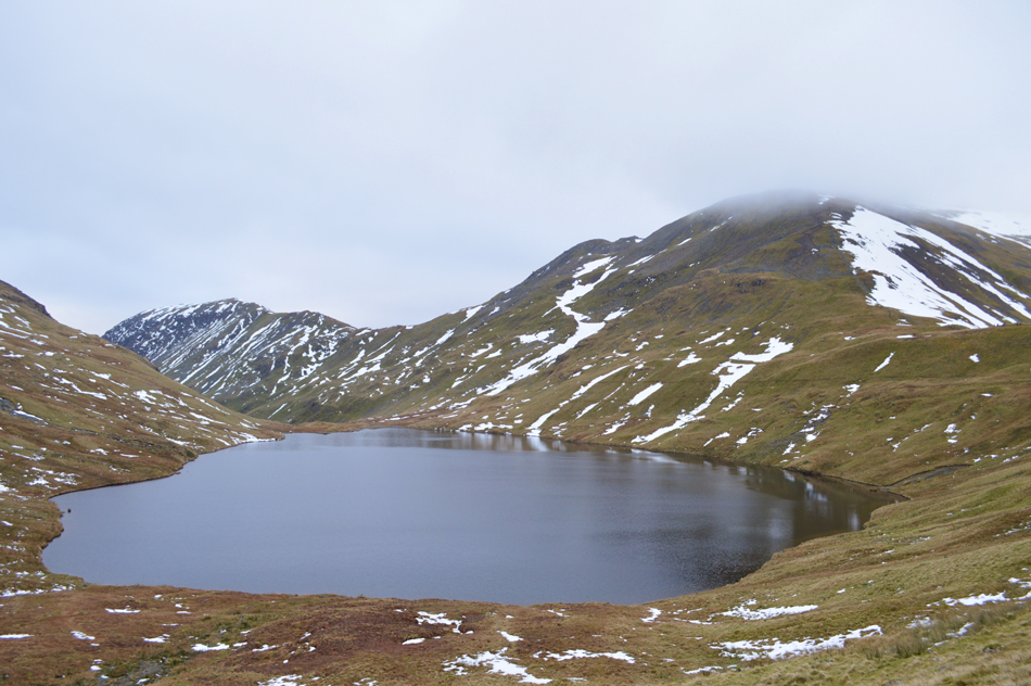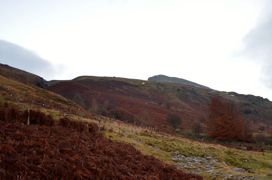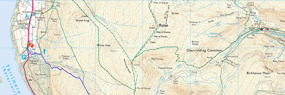 It was agreed I would leave my car here at the lay-by before David would drive us north towards Swirls so I began swapping my gear from one car to the other carefully checking that I had everything in my eagerness to get away. With my car locked and my keys secured within my pack we drove the short journey towards Swirls passing the site where the A591 collapsed into Birkside Gill this very weekend one year ago. It was noted that Thirlmere was below its usual waterline soon realising that maybe the level had been left that way in order to accommodate any extra rainfall to the extent of last Decembers storms, a simple plan of action set by United Utilities no doubt.