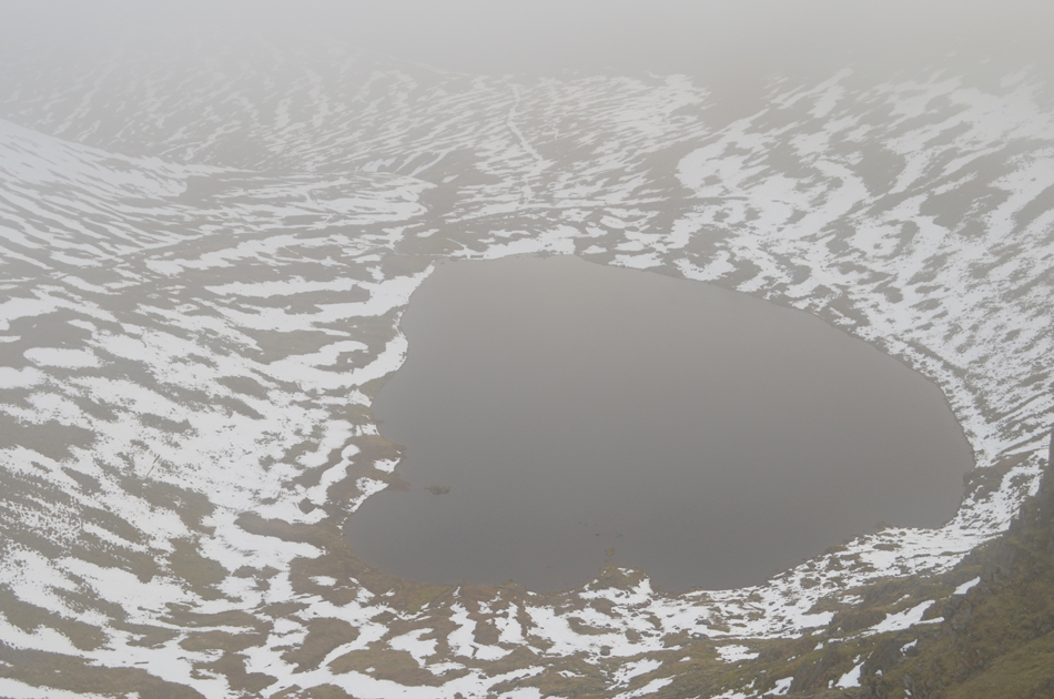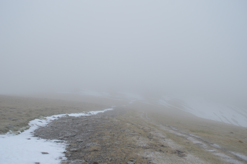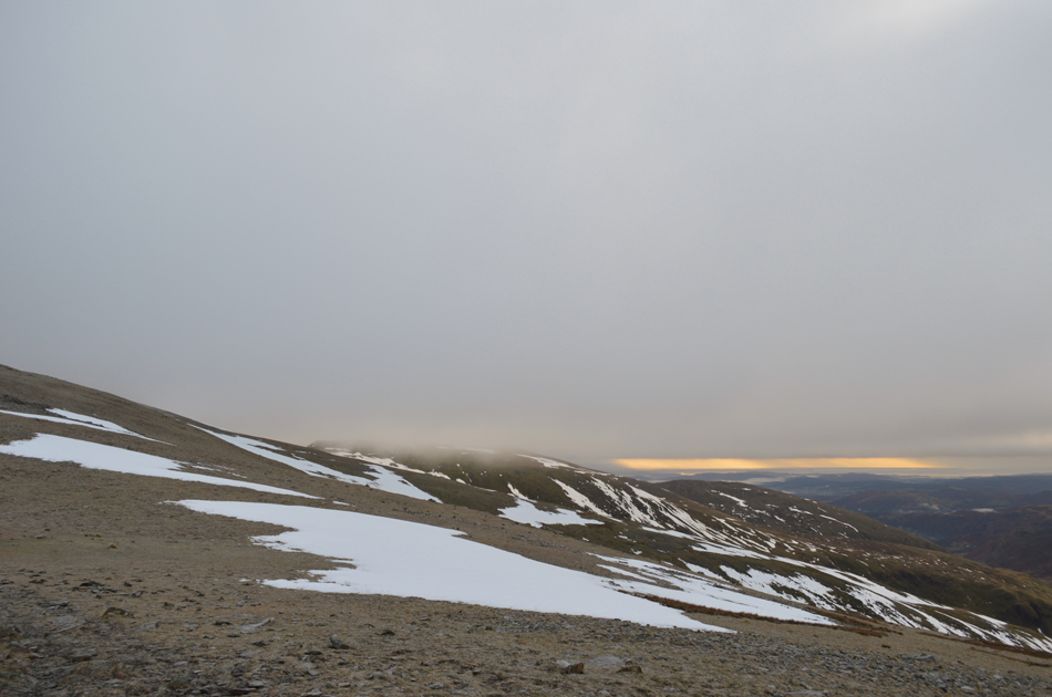 I guess the early warning signs were there for me to see as I drove north in complete darkness only arriving at the lay-by just outside Grasmere as dawn broke after driving through dense fog, although at times from Rydal I could see patches of snow on Nab Scar though momentary gaps. I hit the temporary traffic lights just outside Grasmere after being forced to switch the fog lights on as it started to sink in that maybe the bright forecast was never going to materialise. I was running about a quarter of an hour early after arranging to meet David at 07:45am and after slowing down purely through the density of the fog I pulled in the lay-by securing top spot. It was by now 07:30am and I wasn't really paying attention to any on coming traffic but soon Davids headlights approached from the direction of Dunmail Raise as he slowed down before spinning his car around behind me.