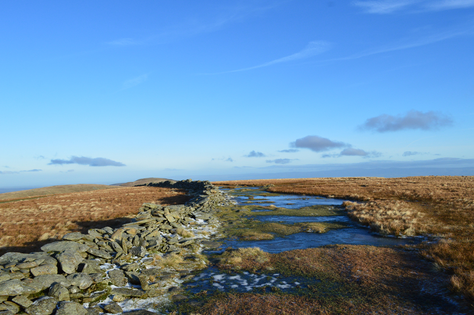 It's too chilly to linger so its onwards over frozen ground towards High Raise. |