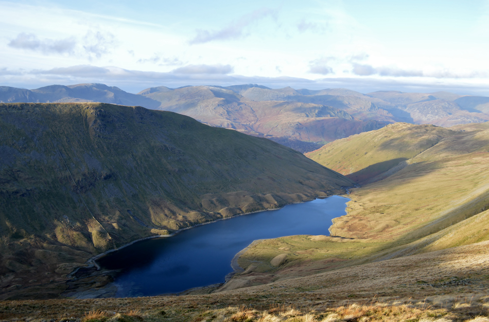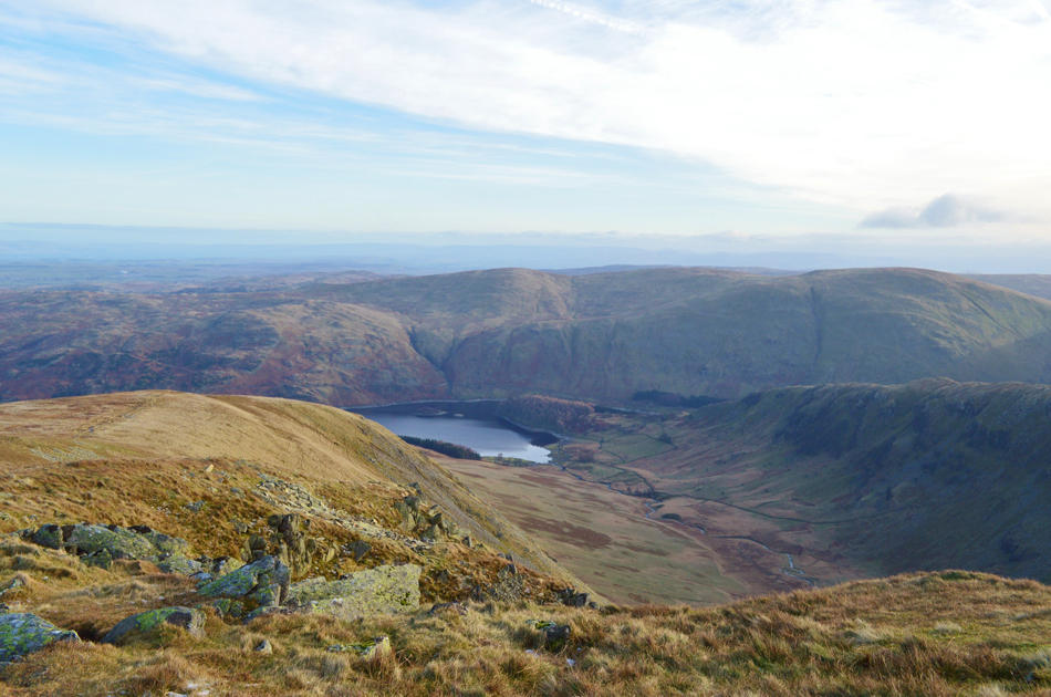 Commanding views over Hayeswater, Gray Crag, Brock Crags and a host of Eastern giants. |