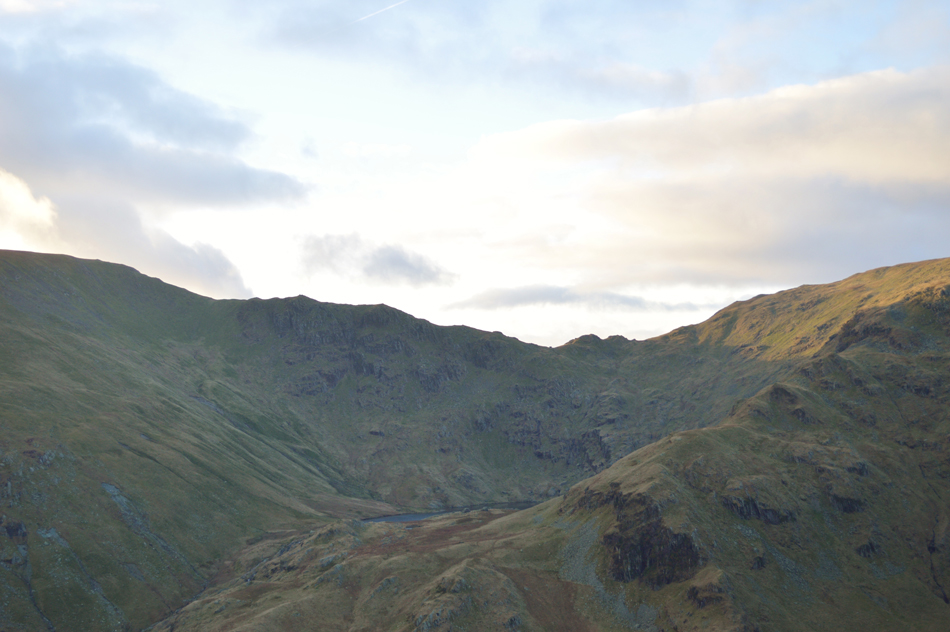 Distant views over Small Water towards the top of Nan Bield Pass. |
