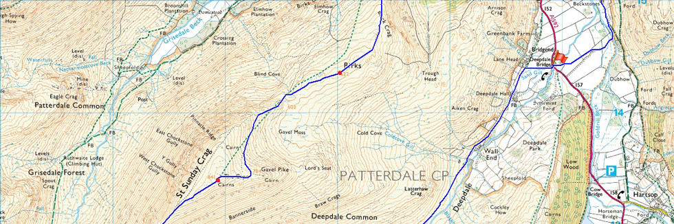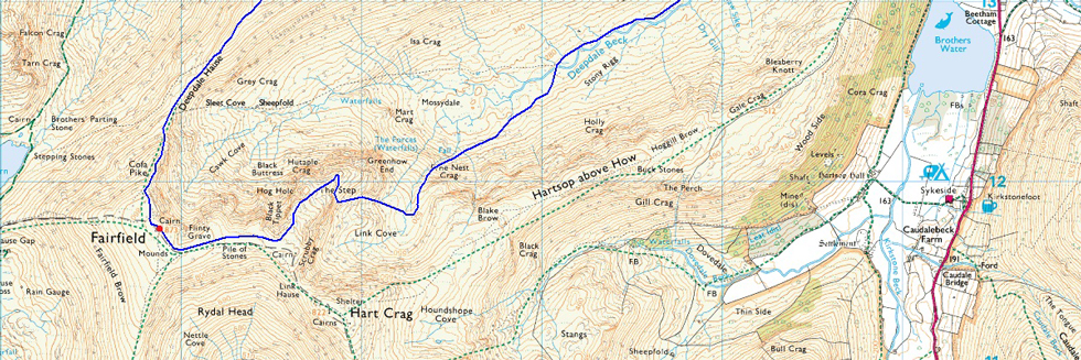 Deepdale Bridge – Wallend – Deepdale – Mossydale – Link Cove – The Step – Link Hause - Fairfield – Cofa Pike – St Sunday Crag – Birks – Thornhow End – Patterdale – Rooking – Deepdale Bridge