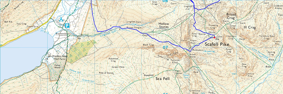 Those with a keen eye may be able to spot the Corridor Route in the lower left which is where I'm heading next not before visiting Lingmell first. |