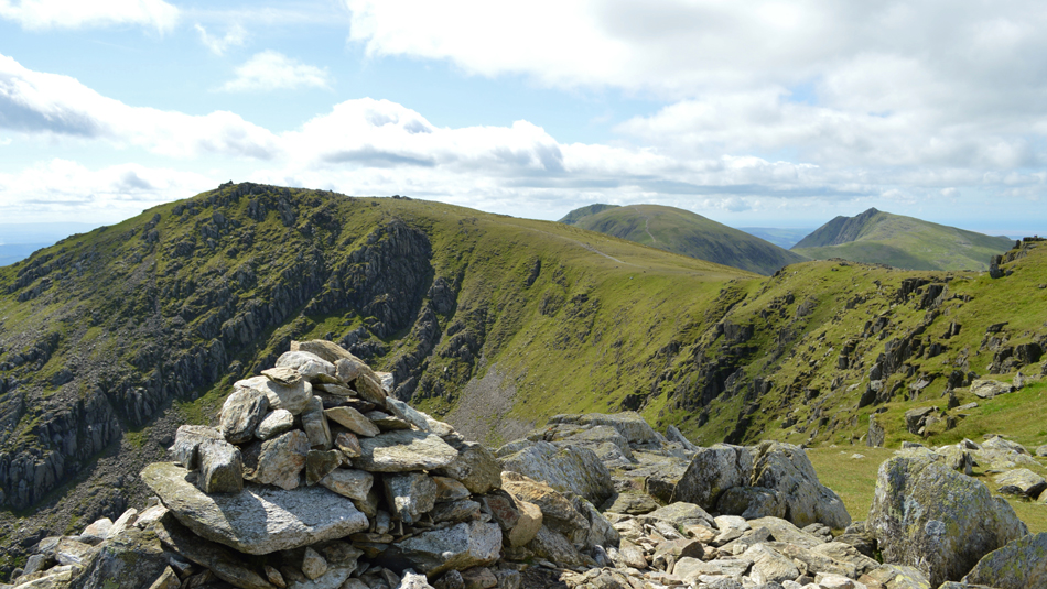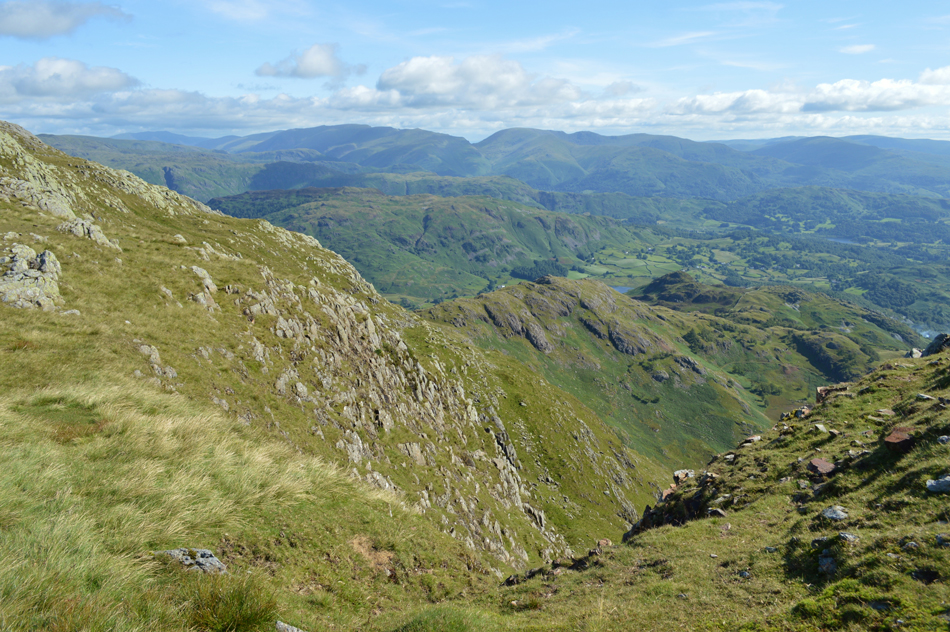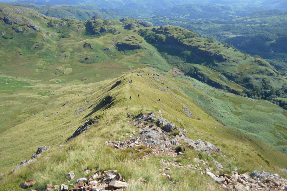 Views over Wetherlam Edge towards Birk Fell Man. |