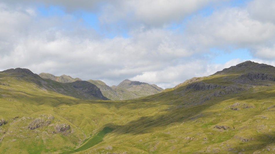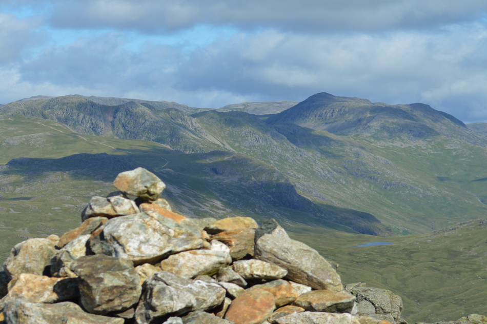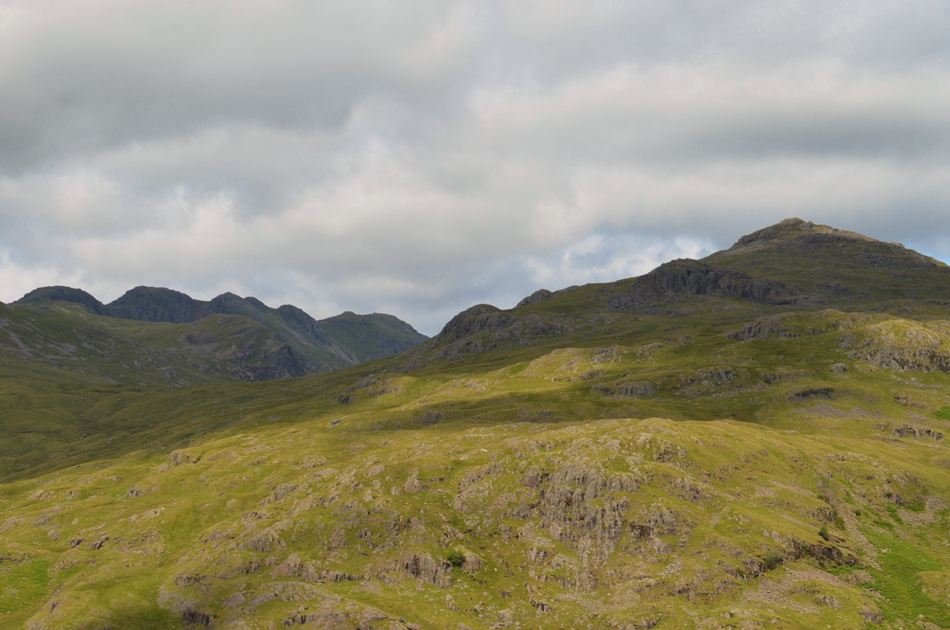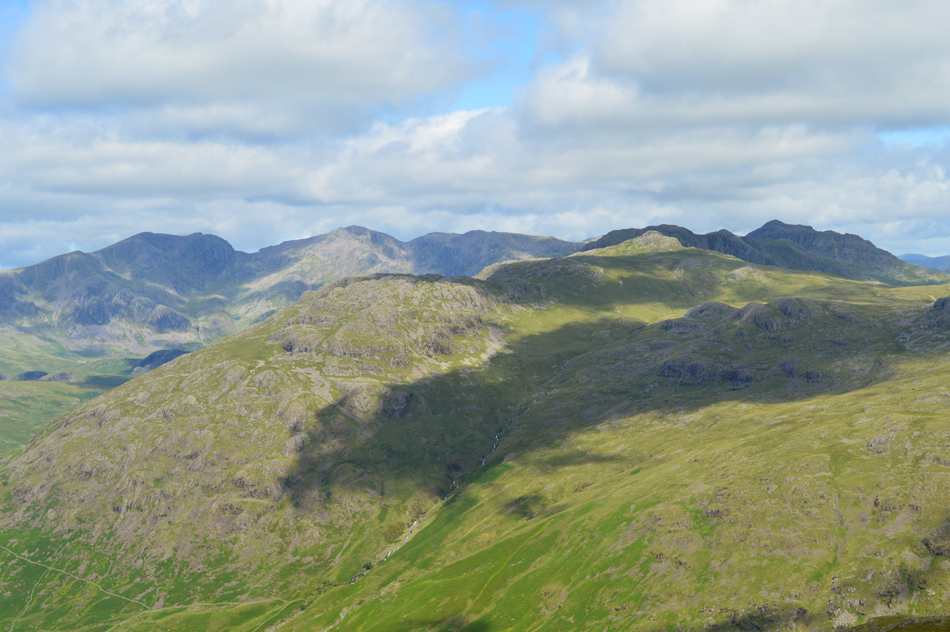 Views over Little Stand this time including Cold Pike, Crinkle Crags and Bow Fell. |