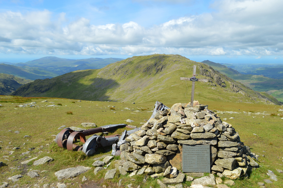 After leaving Swirl How summit I found my way down to the Memorial of the British Halifax Mk V Bomber which crashed here after hitting the steep crags over Broad Slack during bad weather in October 1944 All eight crew members including seven Canadians and one Scotsman the youngest of which was just nineteen years of age died instantly.