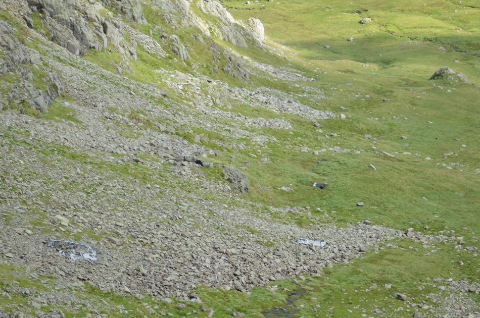 Parts of the wreckage from LL505 can still be seen in Broad Slack. |