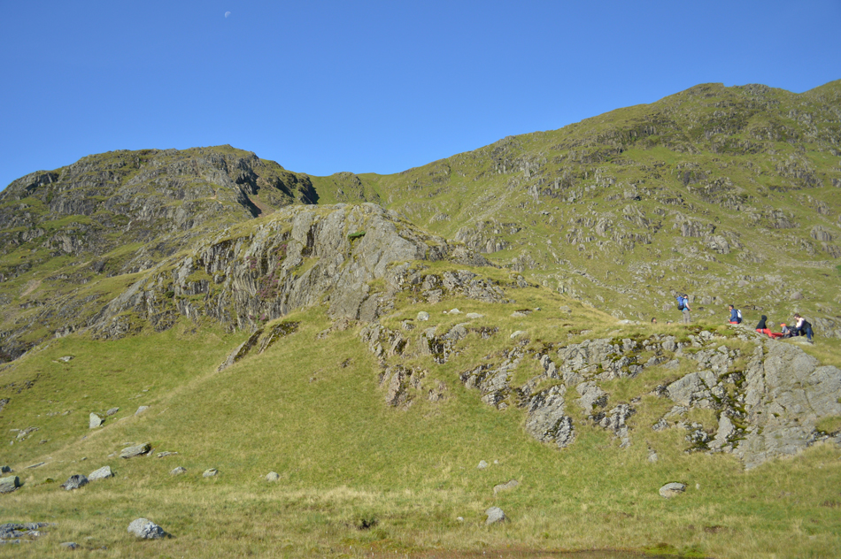 After crossing the footbridge I take in my surroundings spotting a large campsite opposite Penny Rigg and another one behind me below Blake Rigg, now I know why the mini buses are parked back at Tilberthwaite. The group over towards Penny Rigg are putting tents down but the other group are up ahead and are starting to make a ascent on Steel Ridge , I have a good view of their ascent but I'm still quite far behind but I'm hoping I'll be able to close the gap.