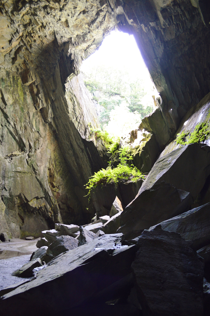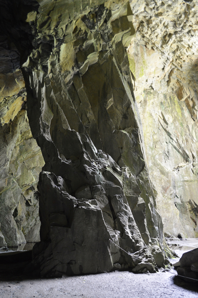 The main attraction besides the huge gaping opening on the far side of the cavern is this stand alone central slate pillar, it's a truly magnificent sight when captured in the right light. |