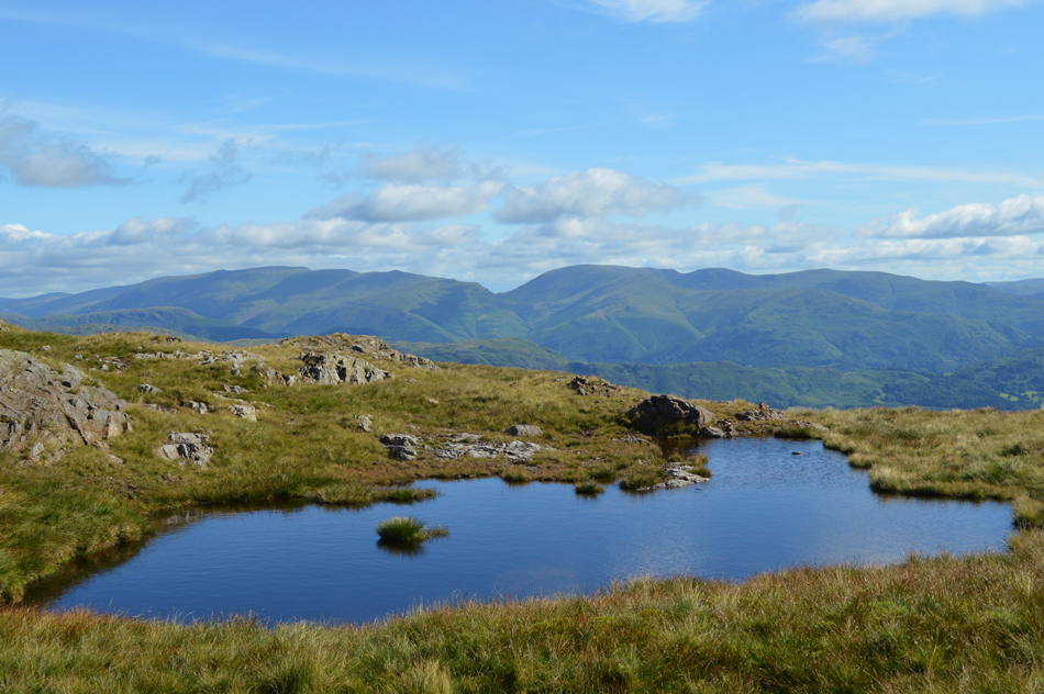 The Helvellyn and Fairfield Groups from the un-named Tarn at the top of Steel Edge. |
