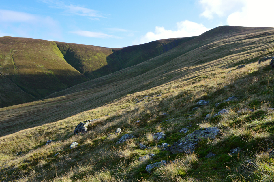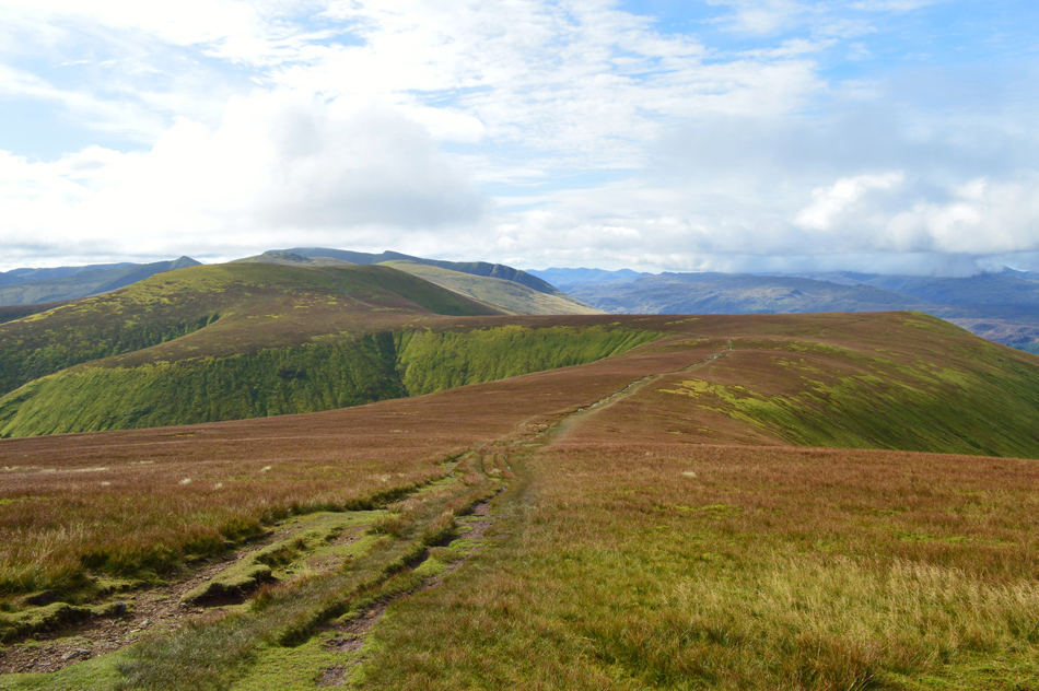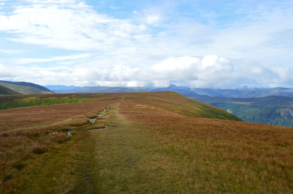 Sweeping grassy slopes, easy walking for the traveller who likes to count his miles but rather wearisome for those who prefer rock in the landscape.