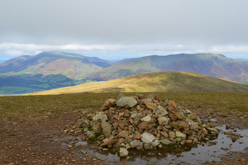 Clough Head, Skiddaw and Blencathra from Great Dodd summit. |