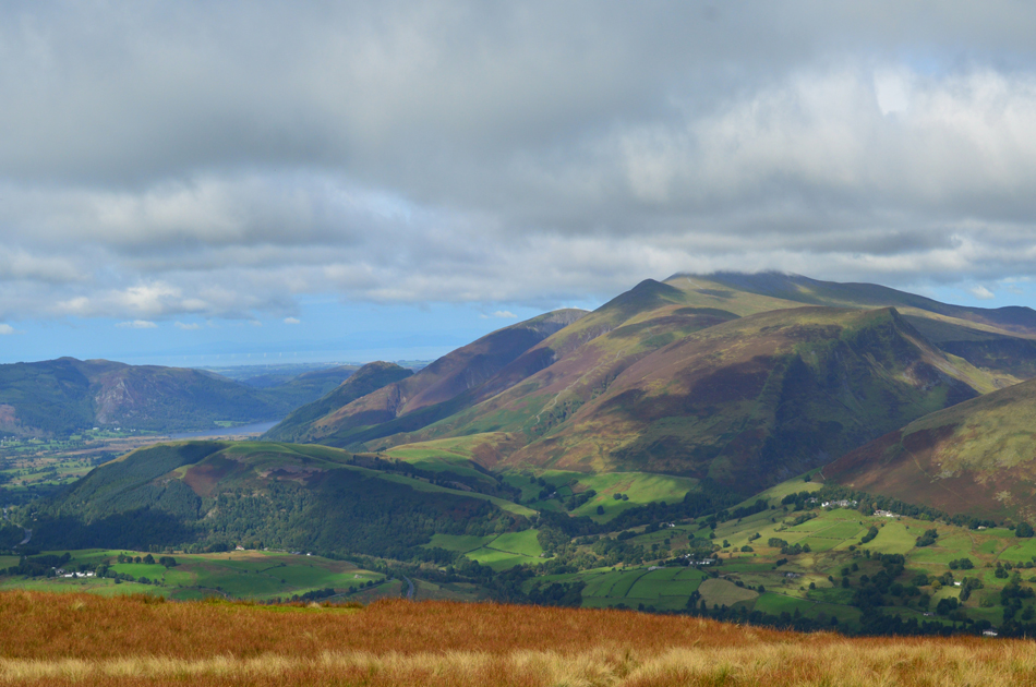 Calfhow Pike and Clough Head from the descent of Great Dodd. |