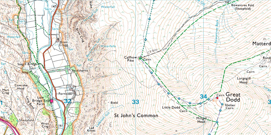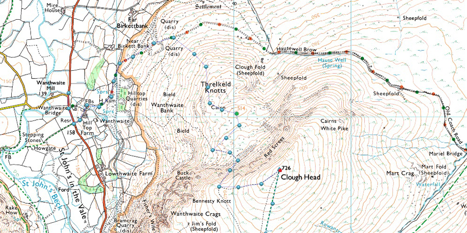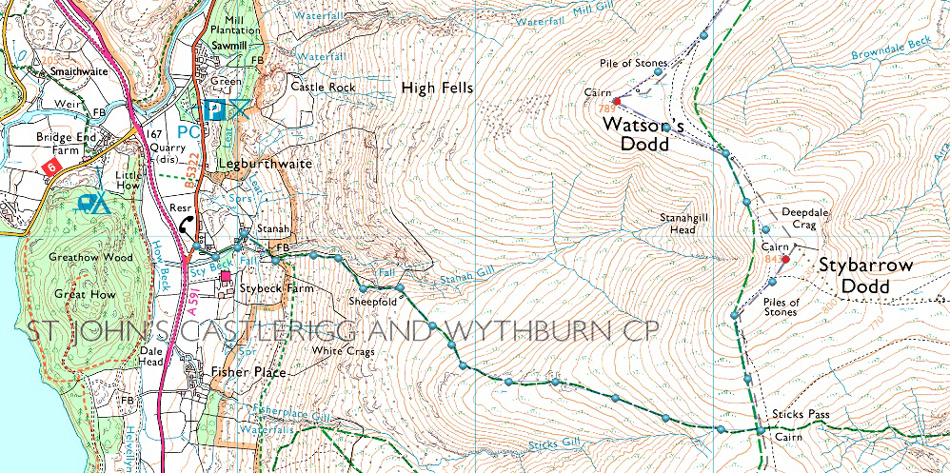 Sticks Pass - Stybarrow Dodd - Watson's Dodd - Calfhow Pike - Great Dodd - Clough Head - Threlkeld Knotts - Old Coach Road - Wanthwaite |