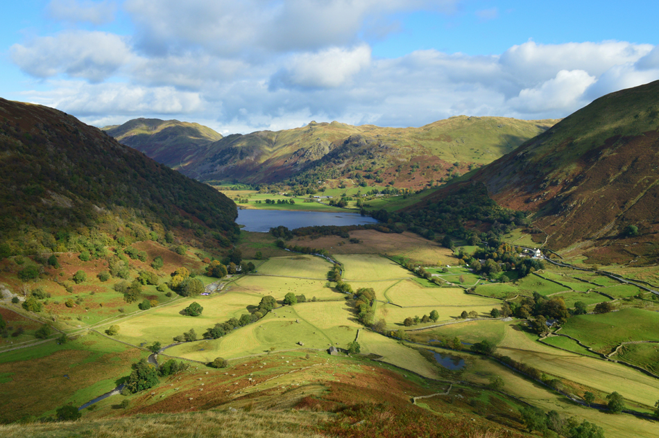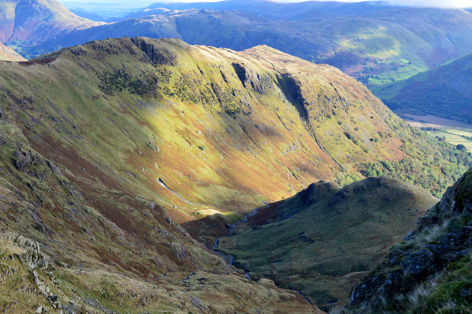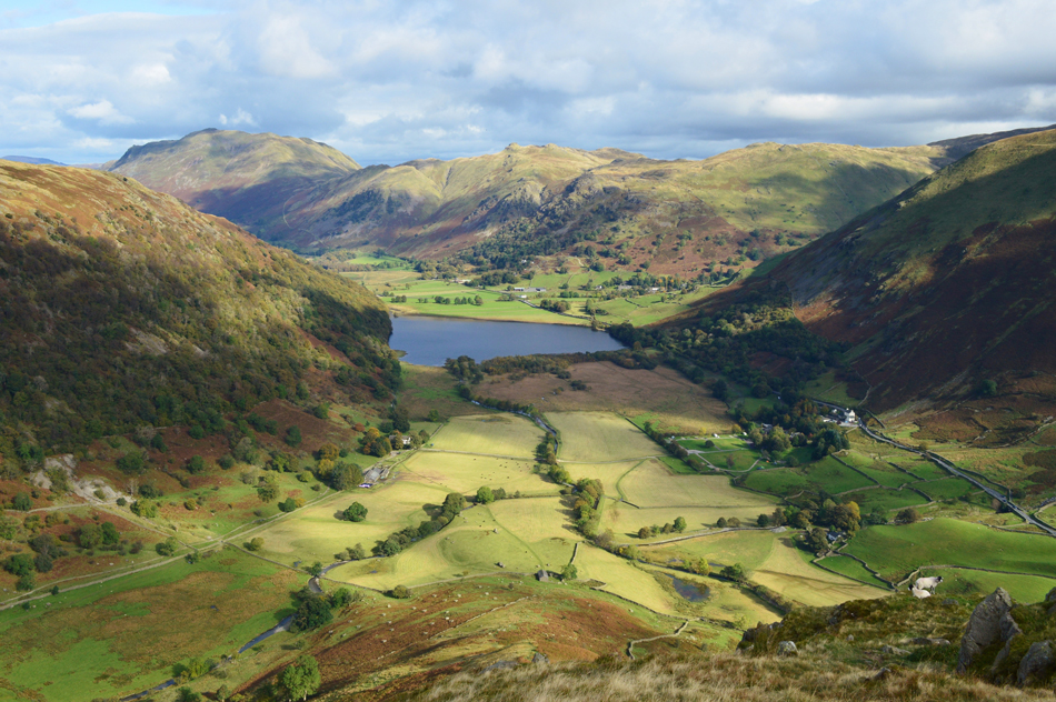 Looking down on Dovedale and Hartsop above How from the Priest Hole, Dove Crag. |