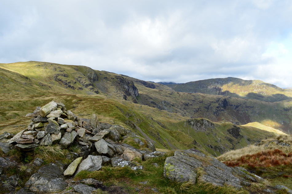 By the time I reached the summit of Little Hart Crag the cloud overhead was beginning to thicken and I was wondering was all this bright sunshine about to come to an end, well not quite but it was starting to get sporadic. |