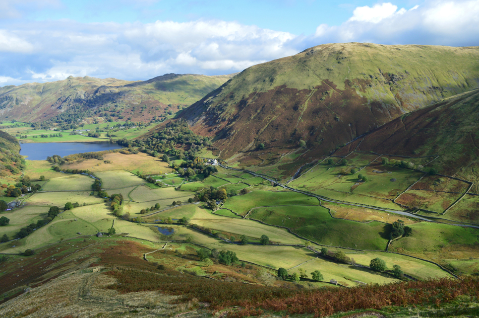 Looking down on Brothers Water, Place Fell, Angletarn Pikes and Brock Crags from High Hartsop Dodd. |