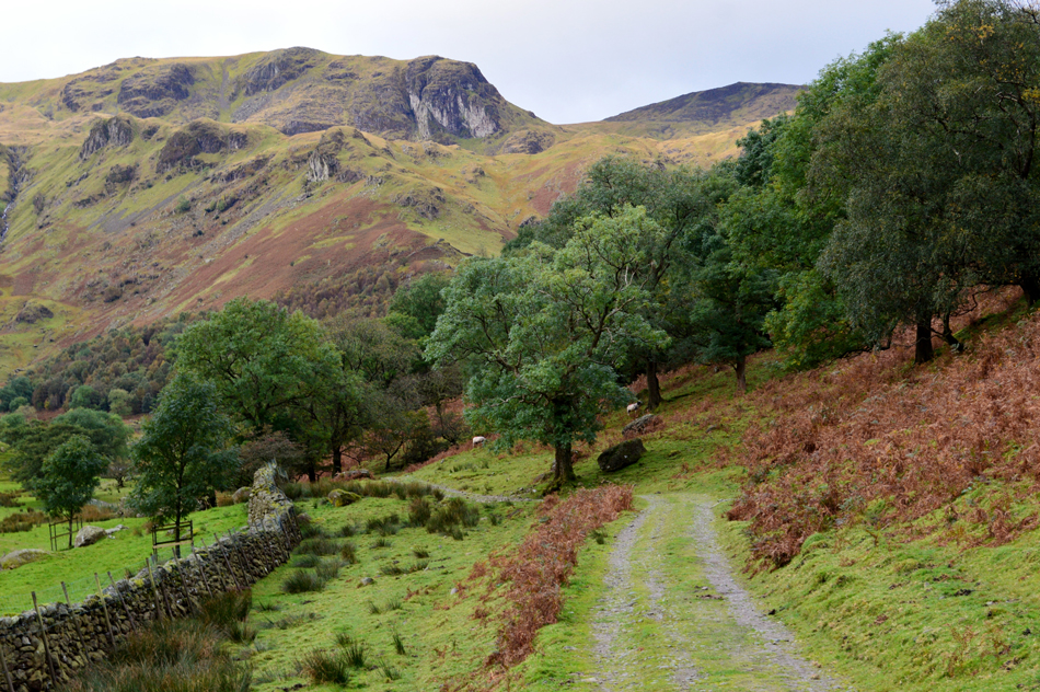 It was difficult to pull myself away from Brothers Water but I managed it in the end. Despite the trees still holding onto their foliage the track along Brothers Water was littered with leaves which had more than likely been washed down the fell side on the other side of the track. Up ahead is Hartsop Hall which I reach within no time. There's still a few tents pitched in the opposite field at Sykeside with just the odd motorhome too but nothing like it was when I was last here during Summer when all I could smell was the waft of bacon and sausages being cooked on open grills, nope nowt like that at all this morning. I pass through Hartsop Hall and keep right where views of High Hartsop Dodd and Middle Dodd command my view. The bracken had all but shed its colour on High Hartsop Dodd north east ridge with only the leaves from the trees to follow. |