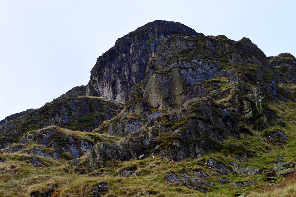 The vertical cliffs of Dove Crag from Hunsett Cove. |