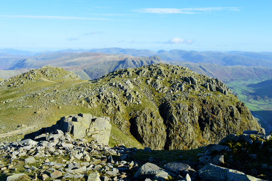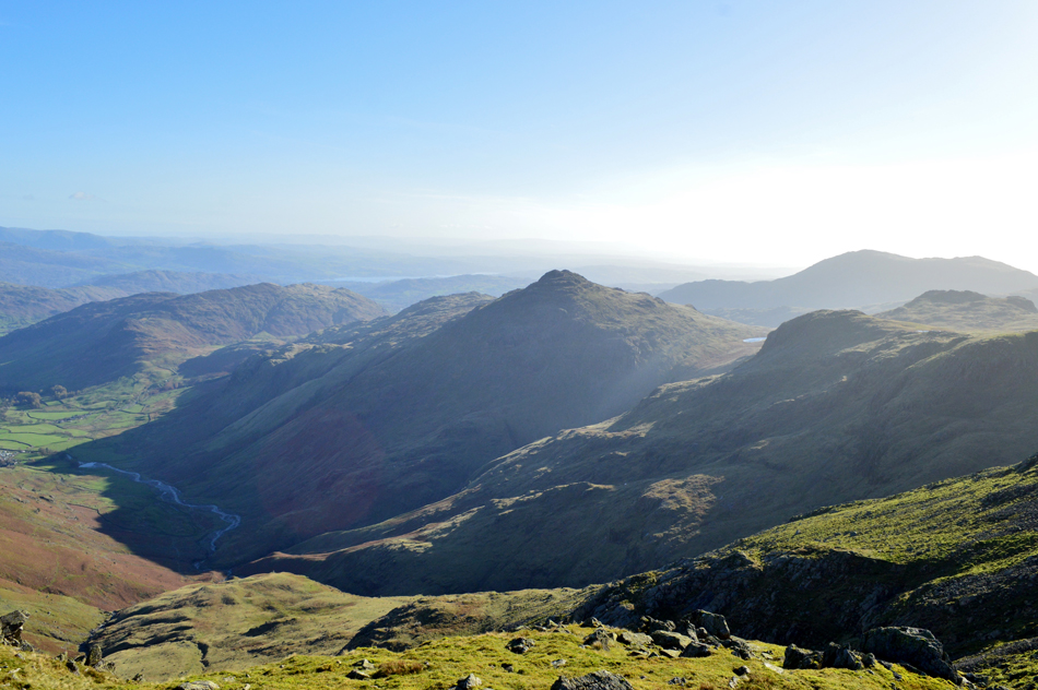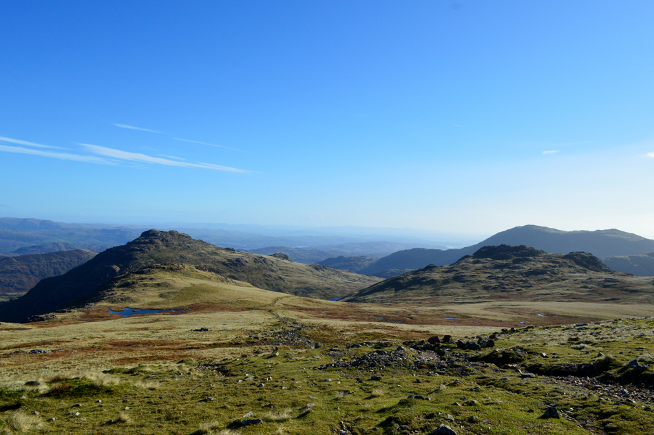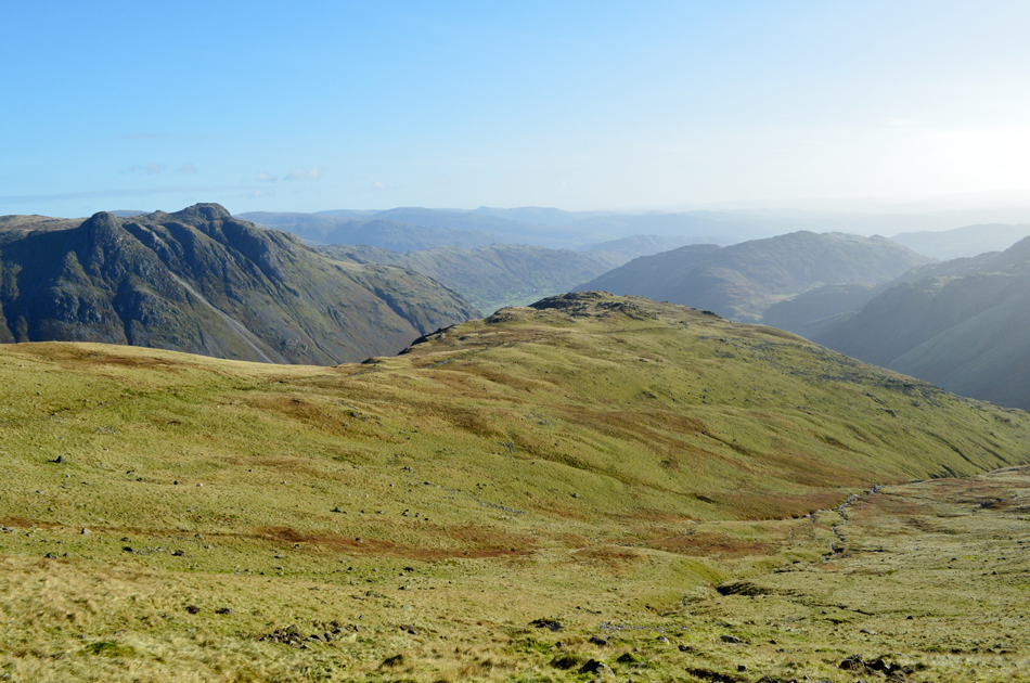 Clear views over towards Great Knott, Cold Pike, Pike O'Blisco and Wetherlam. |