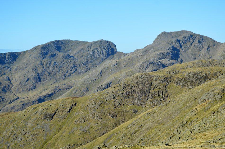 Crinkle Crag and Bowfell from Great Knott summit. |