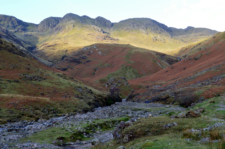 Crinkle Crags and Shelter Crags from Oxendale. |