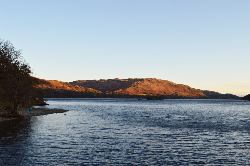 With our cars locked I cross the road and take in the view over Ullswater towards Gowbarrow Fell whose slopes are illuminated in a rich afterglow of morning sunlight right about the moment the woman from the camper van wonders into view. With a few snaps taken we head for the shore path which will soon enough spit us out at the bottom of Greenside Road, Glenridding. |